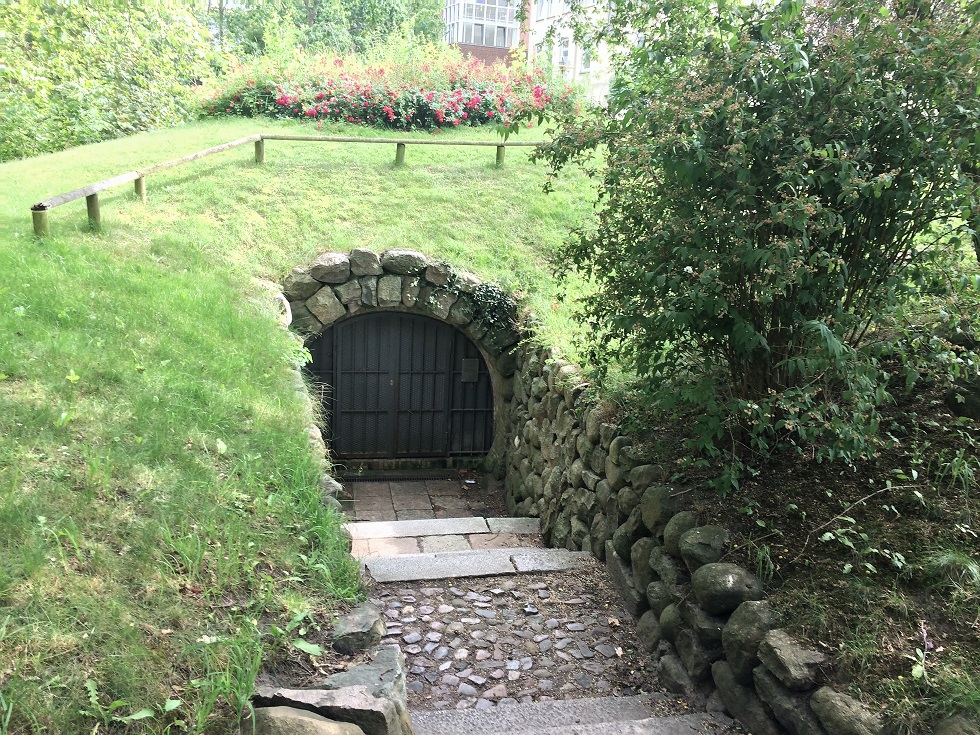 Die Bauform der Spiegelgrotte erinnert an einen Achzackigen-Stern (Oktagon innen) und hat einen Mittelpunkt als Zentrum. Von innen ist der Raum gewölbeförmig und mit jeweils einem eingelassenen Spiegel pro Wand ausgestattet. Schon etwas mysteriös anmutend! Was wohl der Erbauer sich dabei gedacht haben möge. Zumal das Ganze auch noch unterirdisch angelegt wurde. War es um in Verbindung zu kommen mit Wesen, um zu Meditieren, zur Bewusstseinserweiterung oder Selbsterkenntnis oder einfach nur zum Trauern? Gleich gegenüber der Kapelle fand ich eine Grabsäule. Diese verrät über die Inschrift den wohl schmerzvollen Verlust von Maria Magaretha Christiansen im Alter von 6 Jahren und 26. Tagen. War es die Tochter vom Junior Christiansen? Sie war demnach die erste auf dem geweihten Boden in dem Alter. Gern hätte ich näheres über die Geheimnisse der Grotte erfahren.